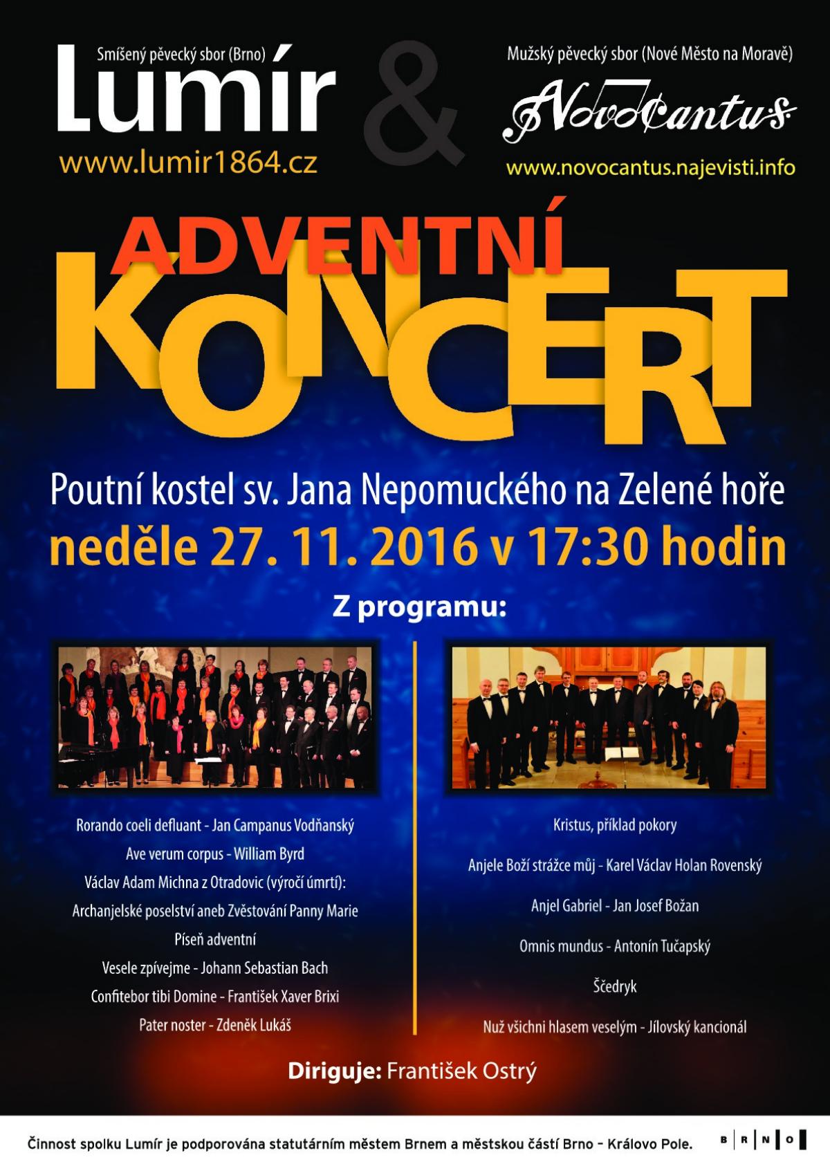 | neděle 27. 11. 17:30 | Žďár nad Sázavou, poutní kostel na Zelené hoře, adventní koncert společně se sborem Lumír, plakát |