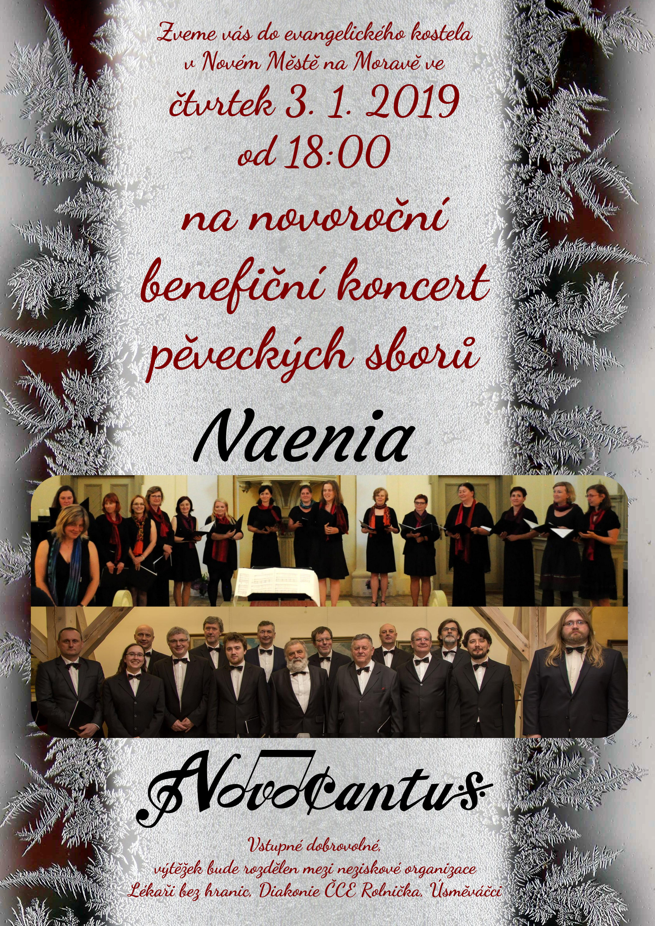 | čtvrtek 3. 1. 18:00 | NMnM, evangelický kostel, novoroční benefiční koncert s ženským pěveckým sborem Naenia, plakát |