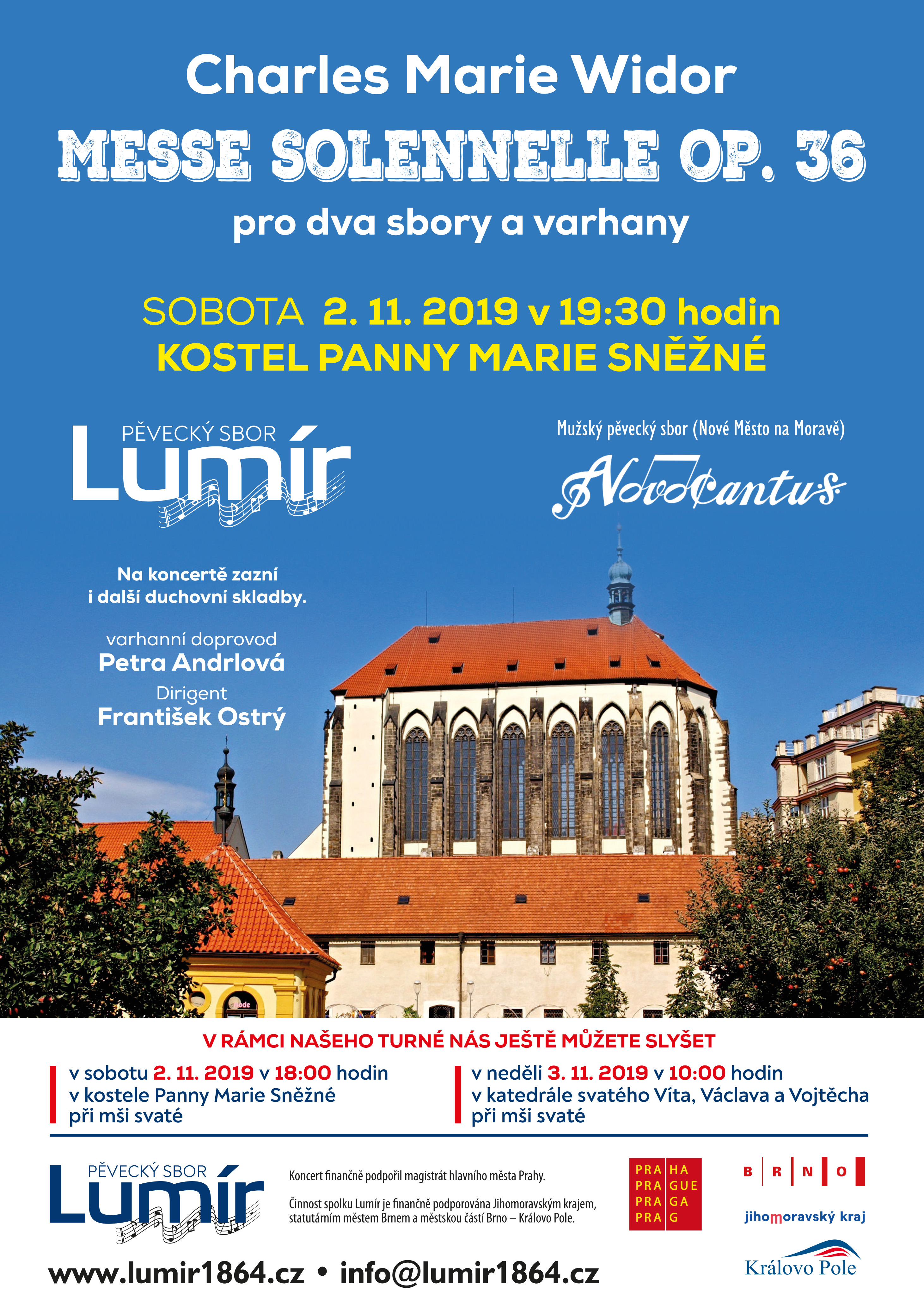 | sobota 2. 11. 19:30 | Praha, mše (op. 36) Charles-Marie Widora a další skladby, s Lumírem, koncert v kostele Panny Marie Sněžné, plakát |