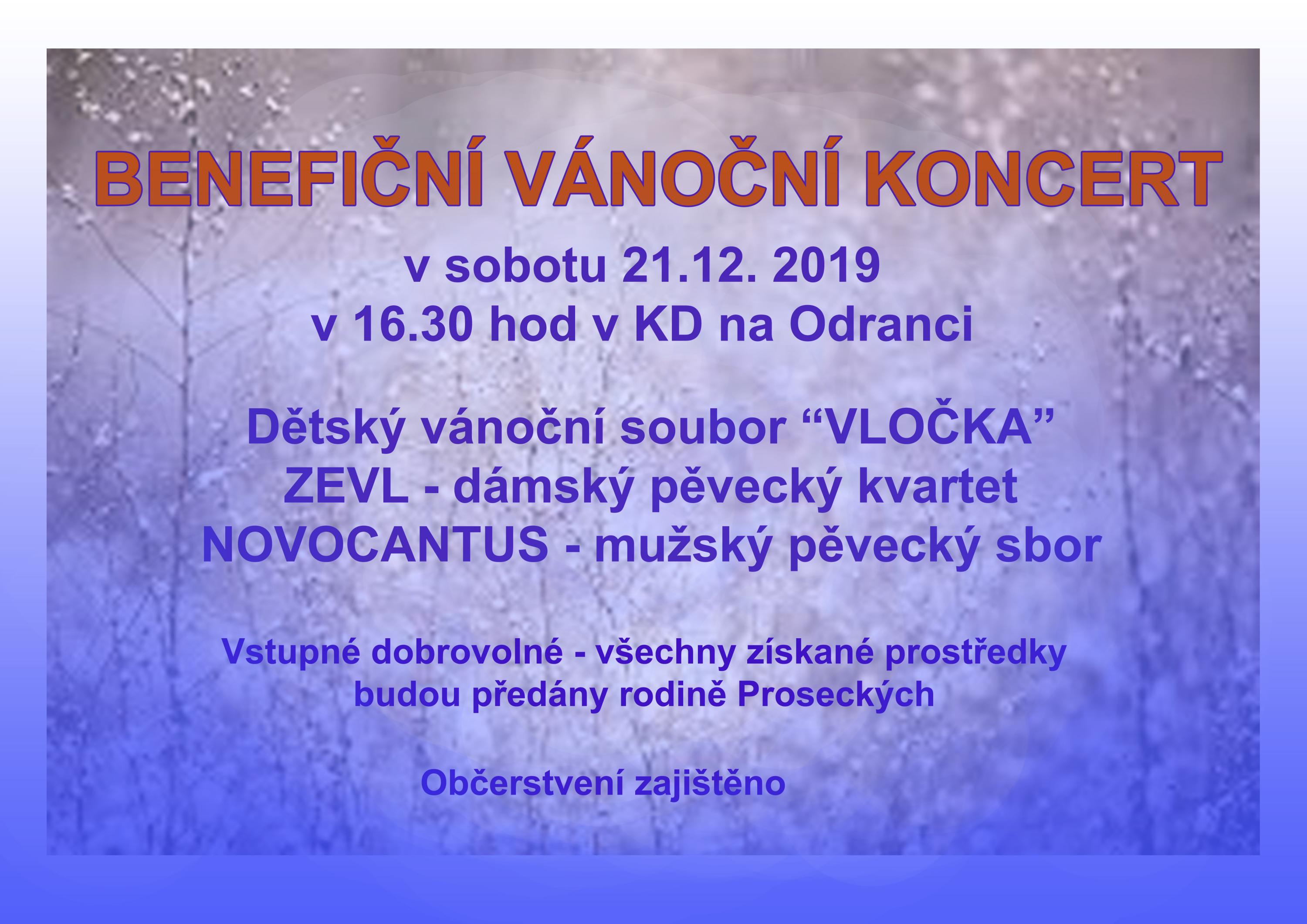 | sobota 21. 12. 16:30 | Odranec, vánoční benefiční koncert pro rodinu Proseckých (plakát) |