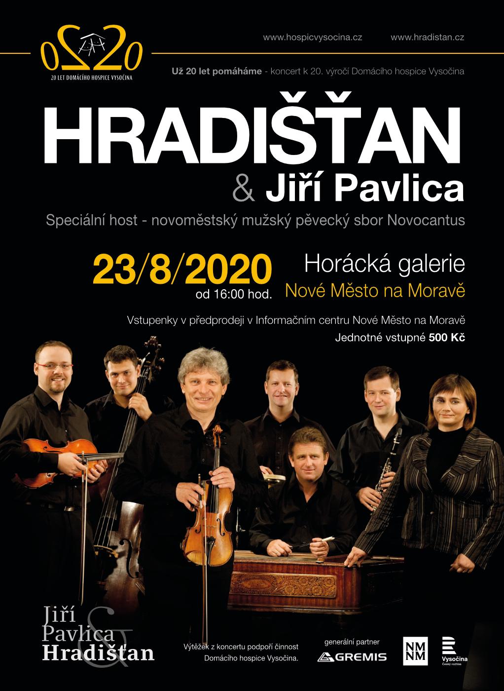 | neděle 23. 8. 16:00 | NMnM, Horácká galerie, benefiční koncert Hradišťan & Jiří Pavlica pro Domácí hospic Vysočina. Novocantus vystoupí jako speciální host. Plakát. |