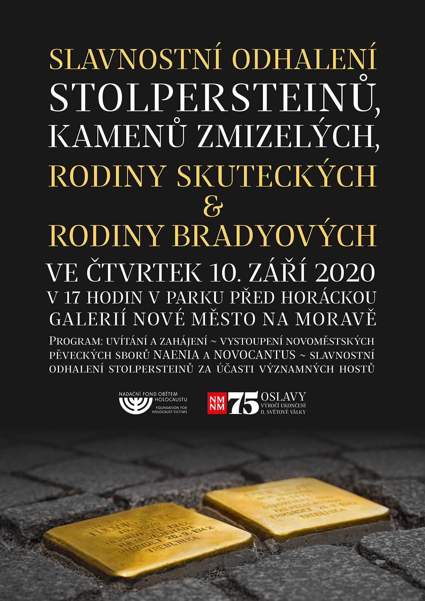 | čtvrtek 10. 9. 17:00 | NMnM, park před Horáckou galerií, odhalení stolpersteinů, uctění památky novoměstských obětí holokaustu, plakát |