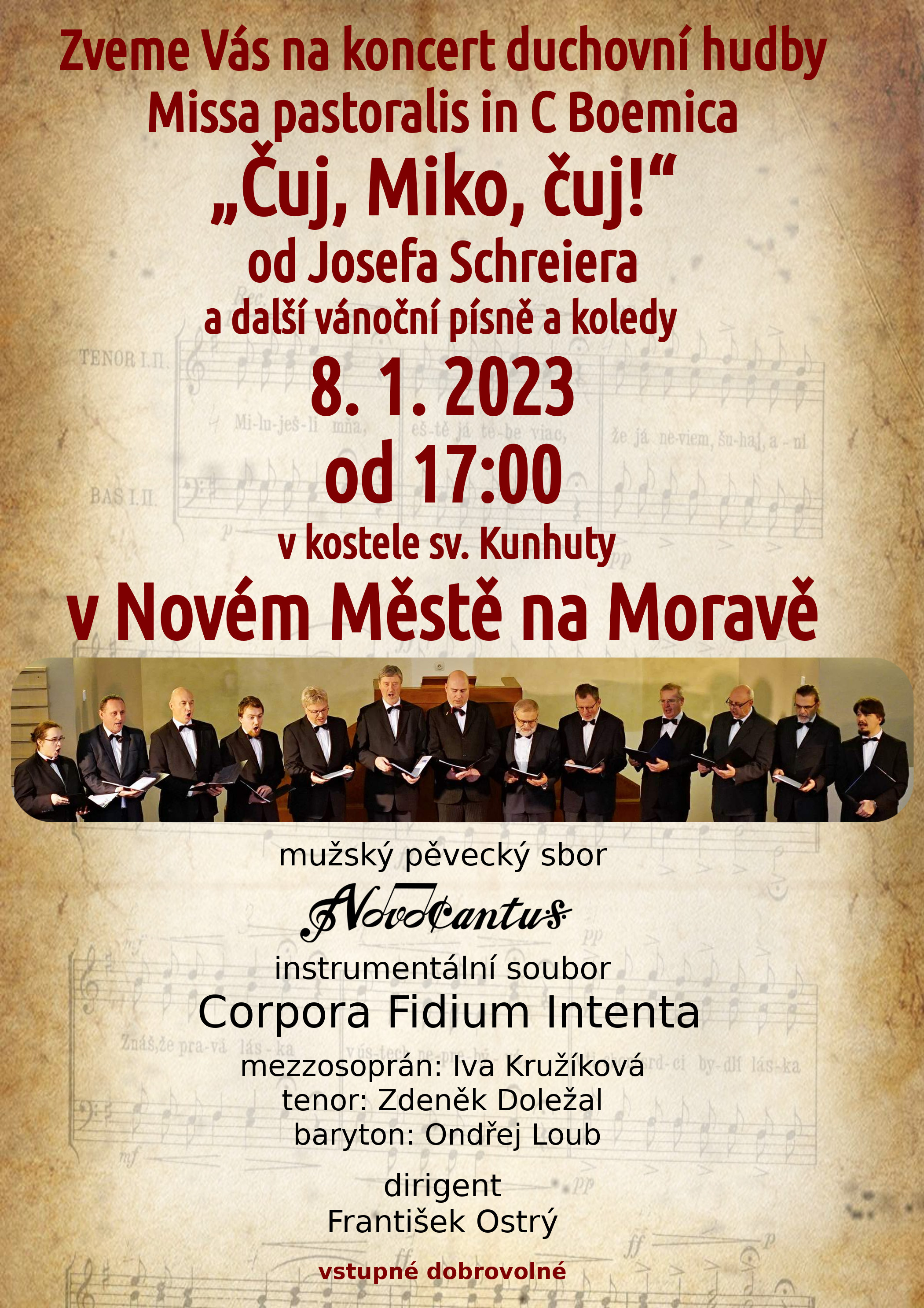 | neděle 8. 1. 17:00 | Nové Město na Moravě, evangelický kostel, benefiční novoroční koncert s Ženským smíšeným sborem, plakát1, plakát2, program |